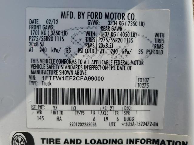2012 FORD F150 SUPERCREW 1FTFW1EF2CF******