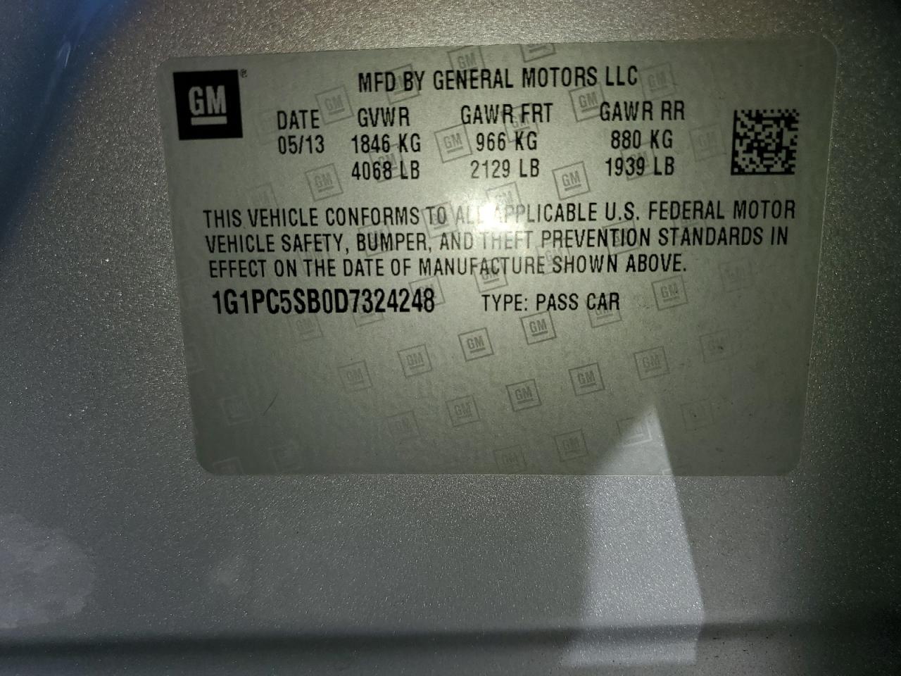 Машина оснащена 4 циліндровим двигуном, об’ємом 1.4 літра. Даний седан має передній привід. Коробка передач - автомат. Тип палива даної моделі - бензин. Згідно з фотозвітом з аукціону Copart пробіг складає 198 485 км. Номер кузова VIN - 1G1PC5SB0D7******.
