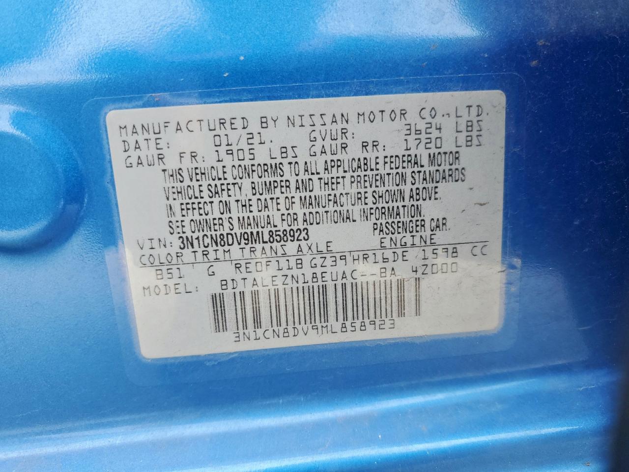 Машина оснащена 4 циліндровим двигуном, об’ємом 1.6 літра. Коробка передач - автомат. Тип палива даної моделі - бензин. Згідно з фотозвітом з аукціону Copart пробіг складає 73 605 км. Номер кузова VIN - 3N1CN8DV9ML******.