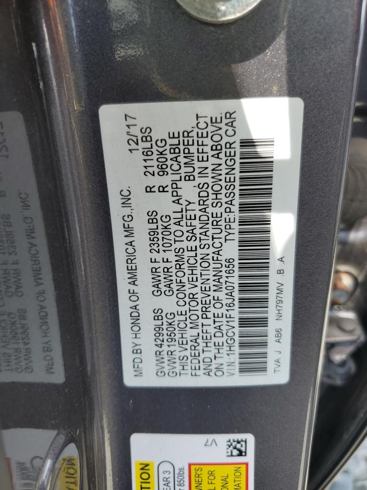 Машина оснащена 4 циліндровим двигуном, об’ємом 1.5 літра. Коробка передач - автомат. Тип палива даної моделі - бензин. Номер кузова VIN - 1HGCV1F16JA******.