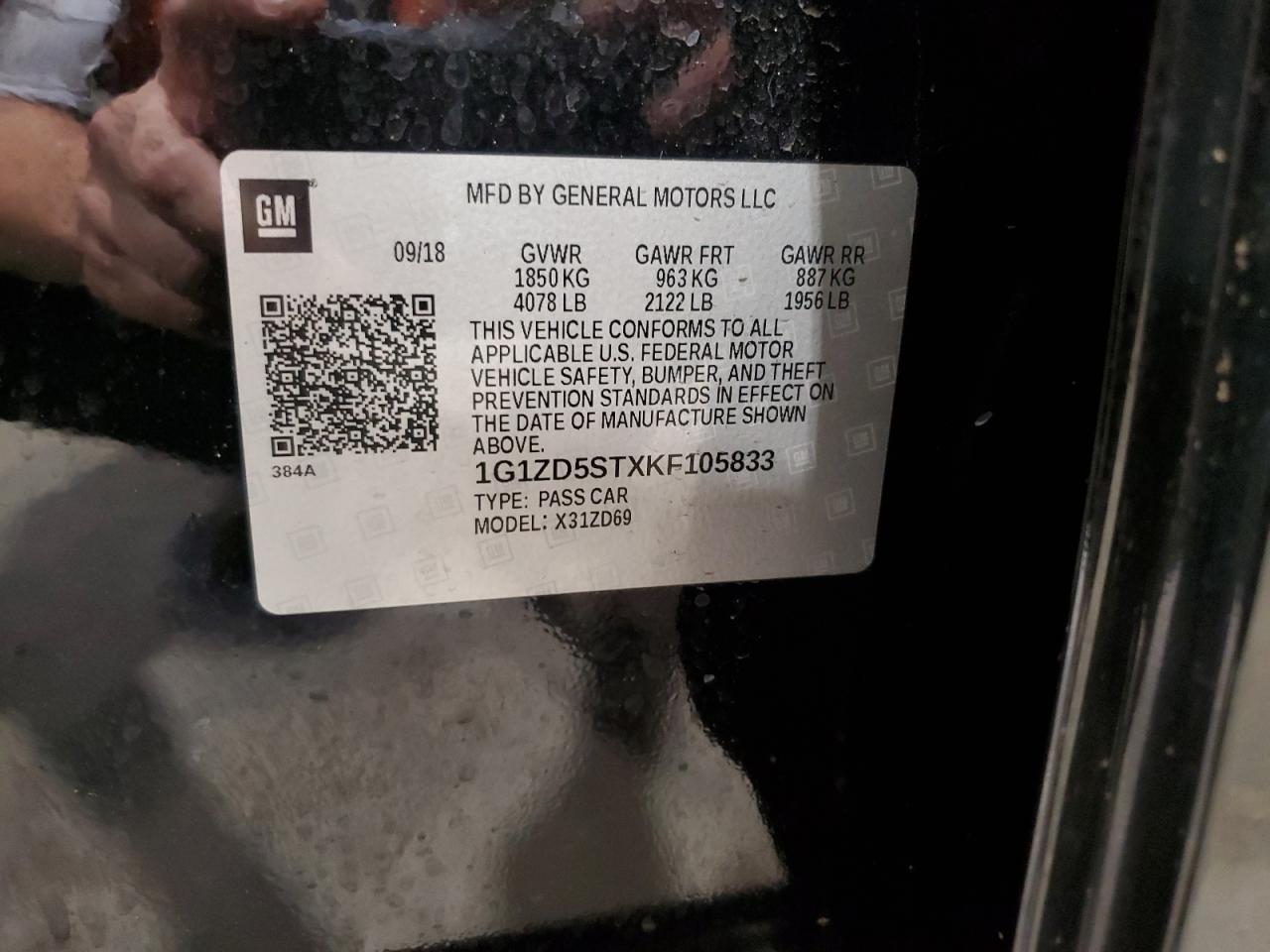 Машина оснащена 4 циліндровим двигуном, об’ємом 1.5 літра. Коробка передач - автомат. Тип палива даної моделі - бензин. Згідно з фотозвітом з аукціону Copart пробіг складає 143 227 км. Номер кузова VIN - 1G1ZD5STXKF******.