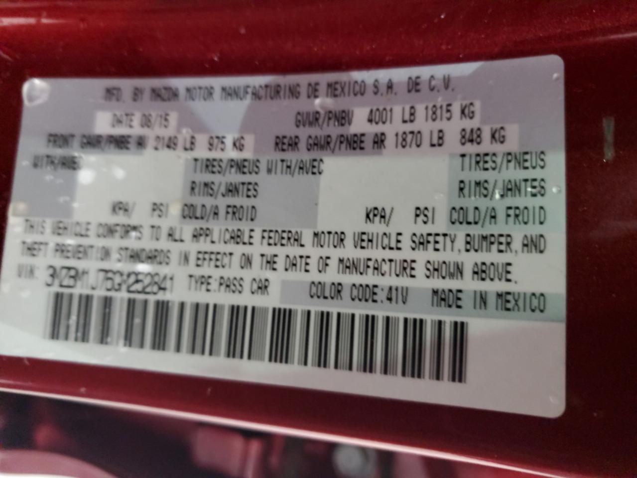 Машина оснащена 4 циліндровим двигуном, об’ємом 2.0 літра. Коробка передач - автомат. Тип палива даної моделі - бензин. Згідно з фотозвітом з аукціону Copart пробіг складає 115 831 км. Номер кузова VIN - 3MZBM1J76GM******.