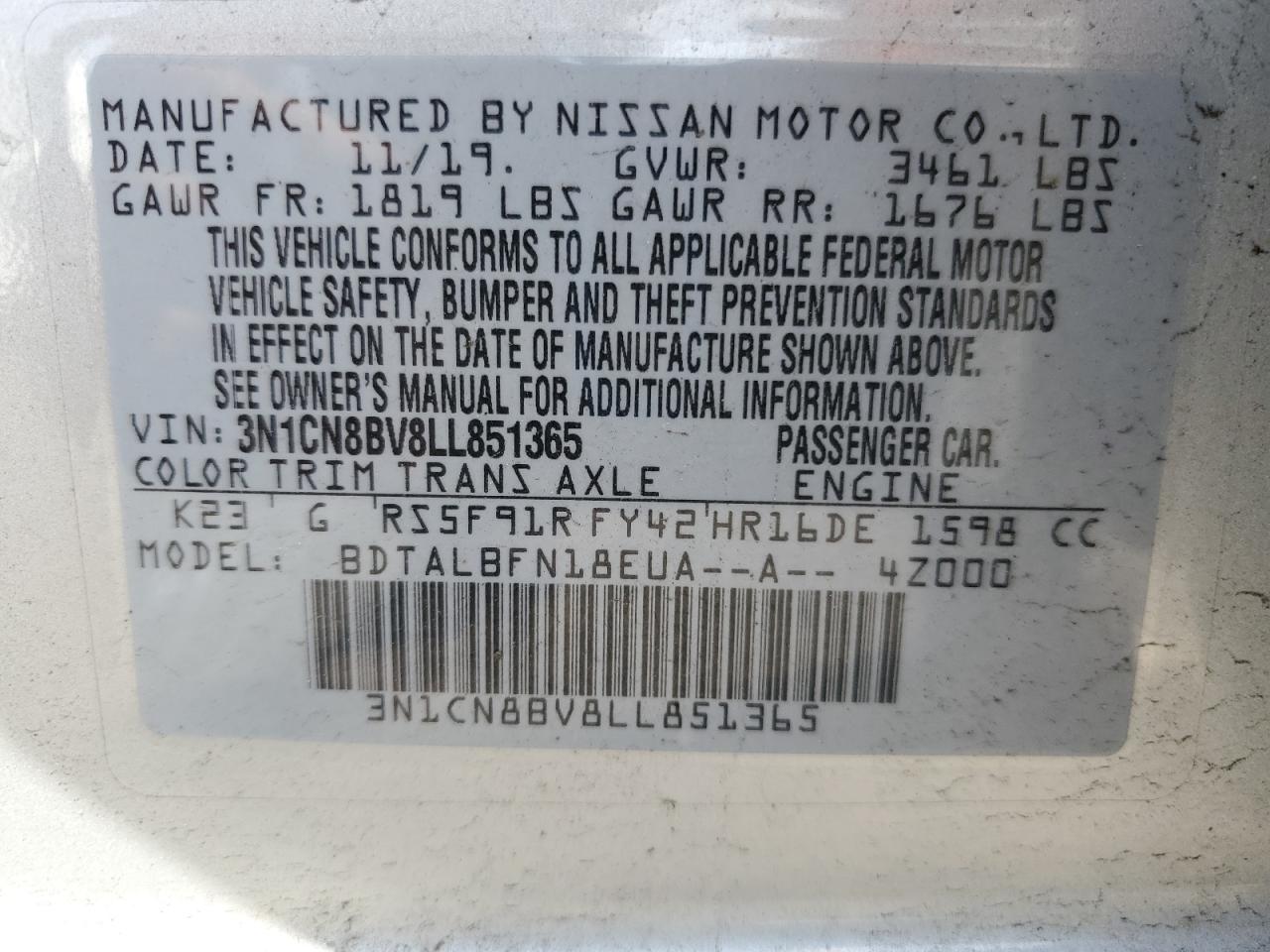 Машина оснащена 4 циліндровим двигуном, об’ємом 1.6 літра. Тип палива даної моделі - бензин. Згідно з фотозвітом з аукціону Copart пробіг складає 84 417 км. Номер кузова VIN - 3N1CN8BV8LL******.