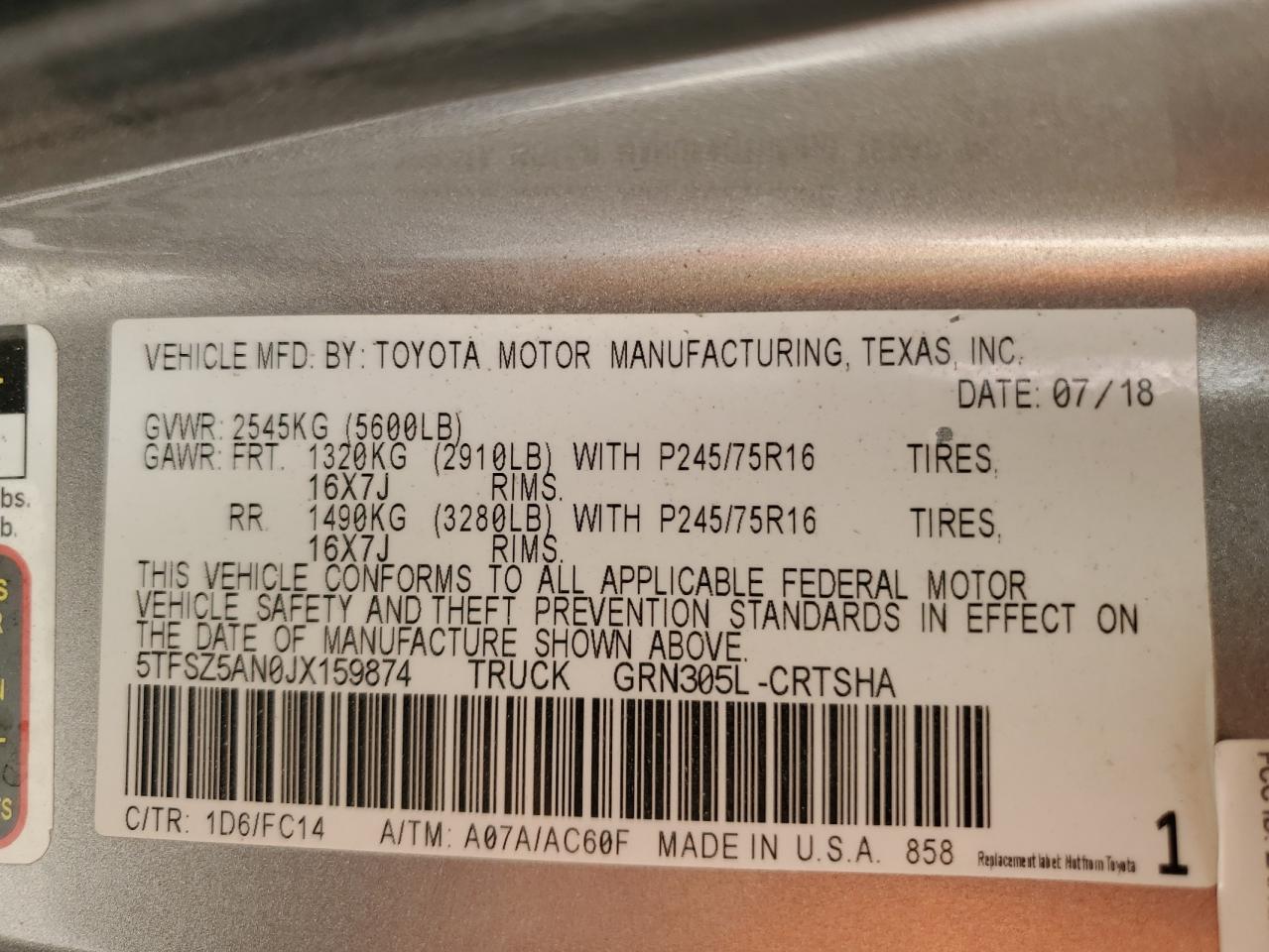 5TFSZ5AN0JX****** -