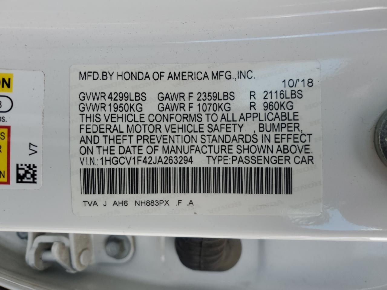 1HGCV1F42JA****** -