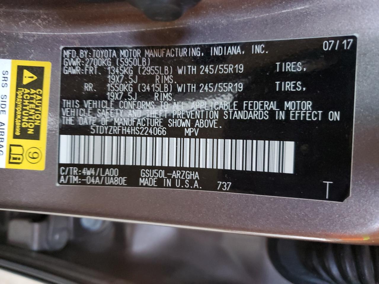 Машина оснащена 6 циліндровим двигуном, об’ємом 3.5 літра. Коробка передач - автомат. Тип палива даної моделі - бензин. Згідно з фотозвітом з аукціону Copart пробіг складає 137 795 км. Номер кузова VIN - 5TDYZRFH4HS******.