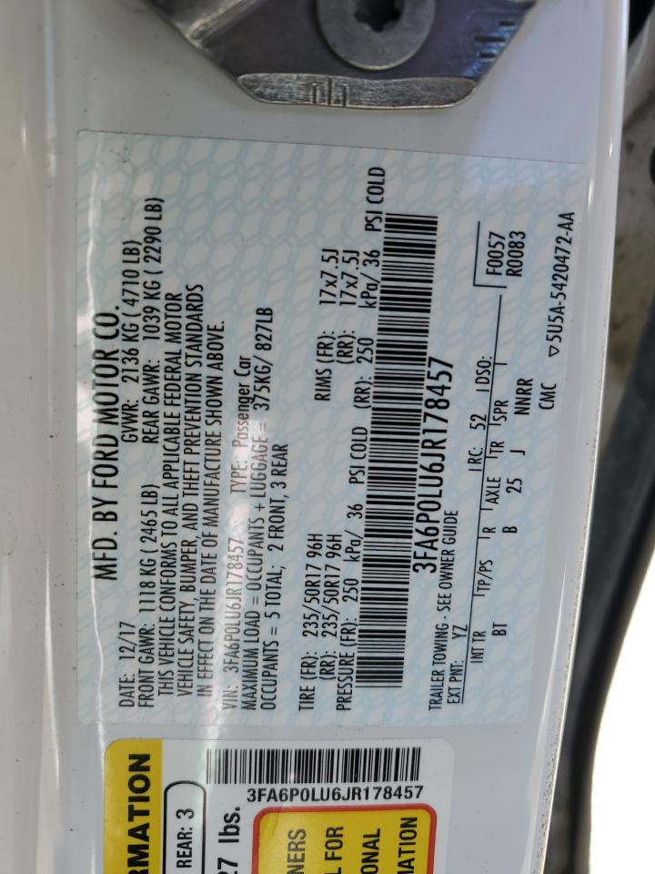 2018 FORD FUSION SE HYBRID 3FA6P0LU6JR******
