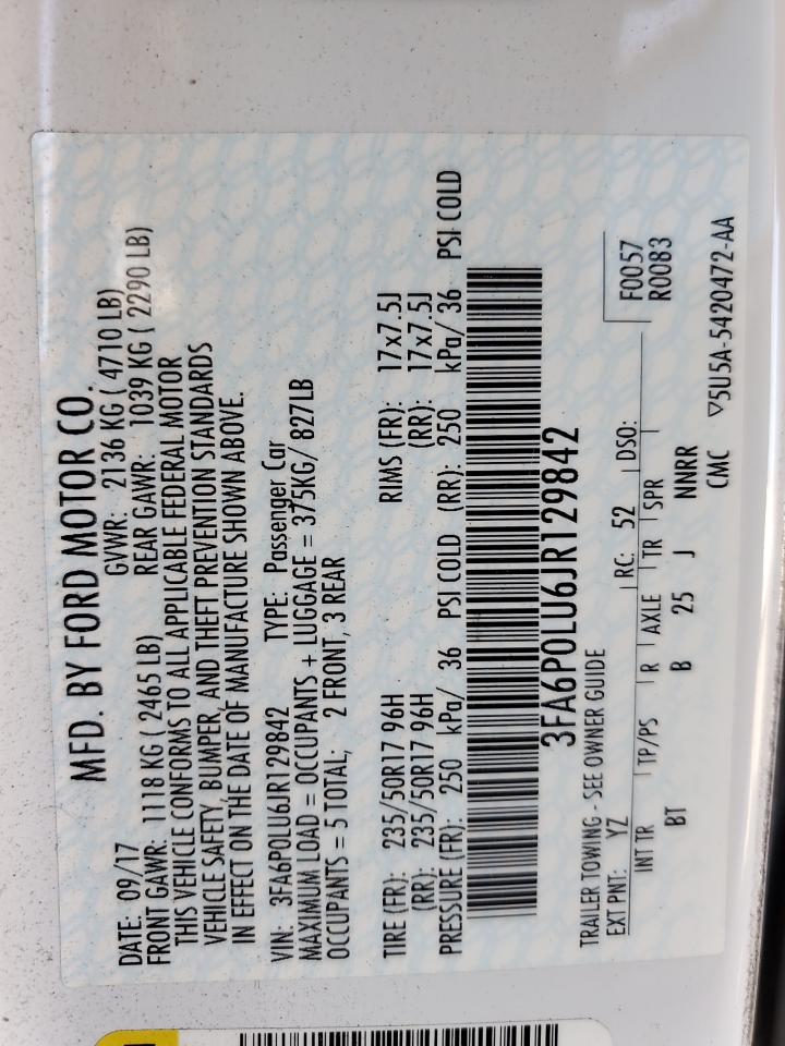 2018 FORD FUSION SE HYBRID 3FA6P0LU6JR******