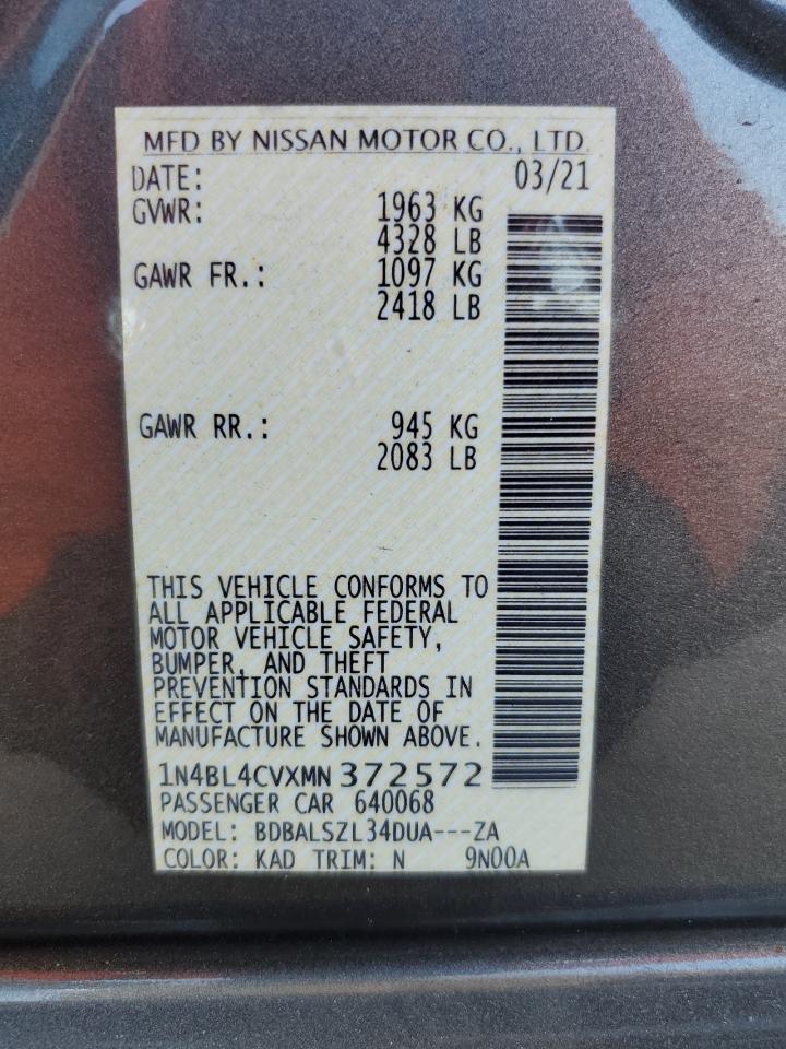 2021 NISSAN ALTIMA SR 1N4BL4CVXMN******