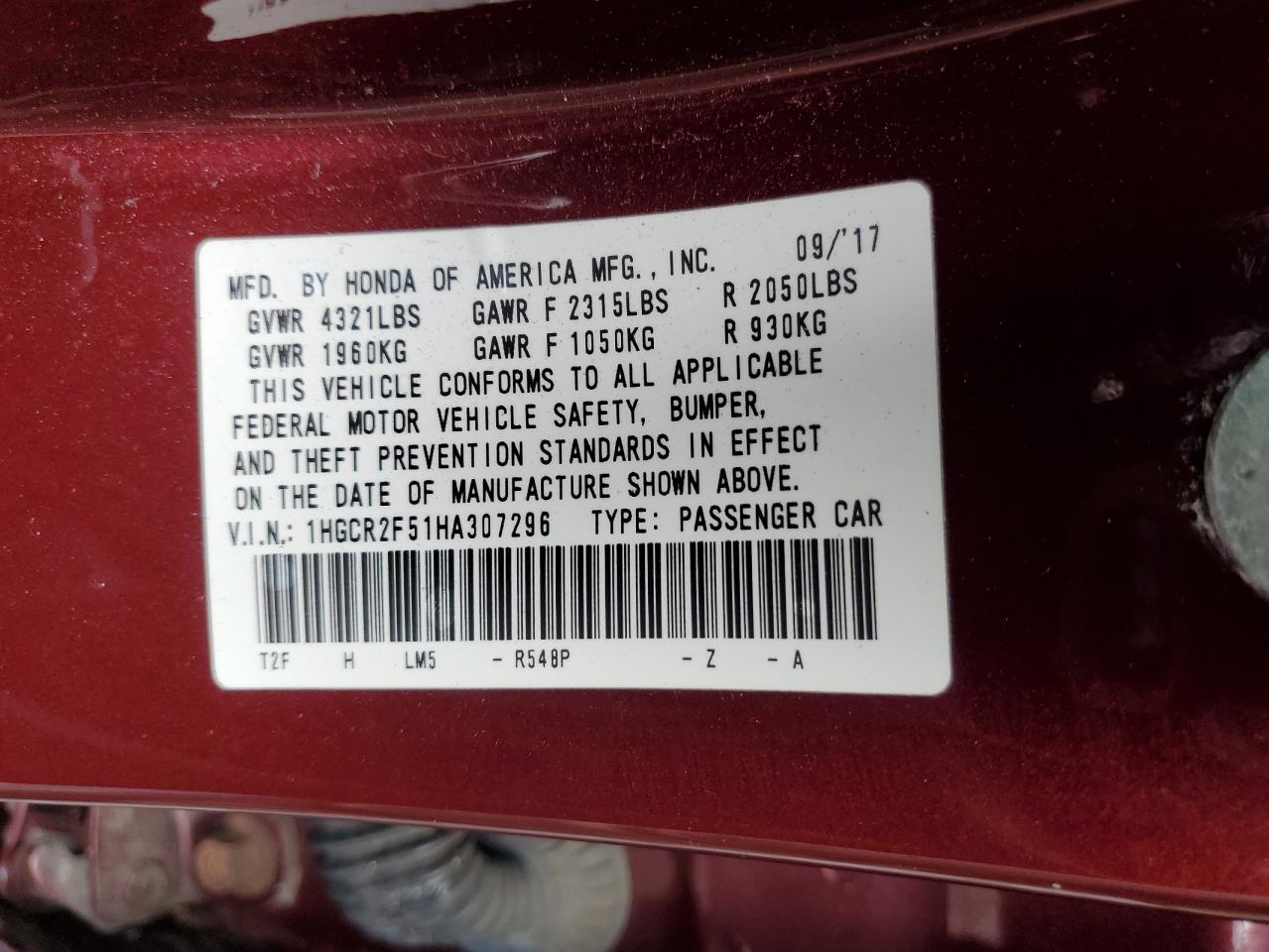 1HGCR2F51HA******