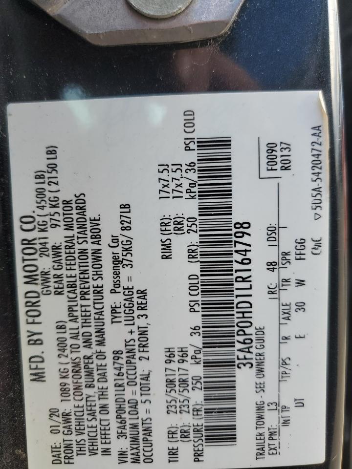 2020 FORD FUSION SE 3FA6P0HD1LR******
