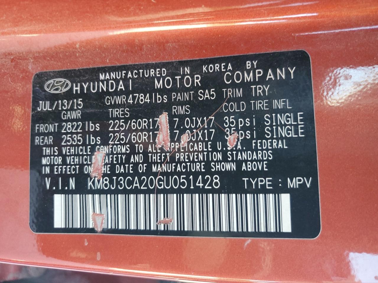 Машина оснащена 4 циліндровим двигуном, об’ємом 1.6 літра. Даний паркетник має повний привід. Коробка передач - автомат. Тип палива даної моделі - бензин. Номер кузова VIN - KM8J3CA20GU******.