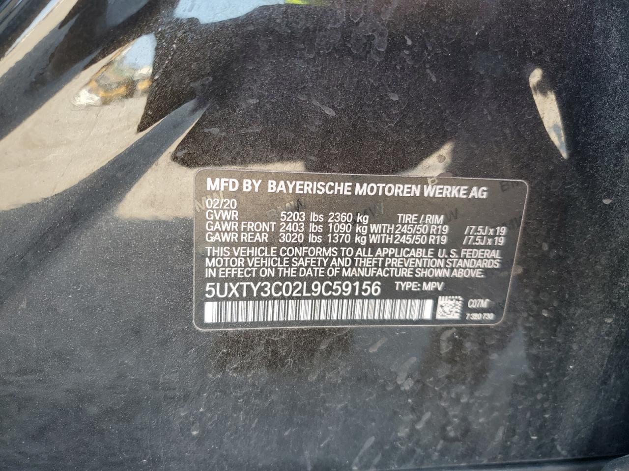 2020 BMW X3 SDRIVE30I 5UXTY3C02L9******
