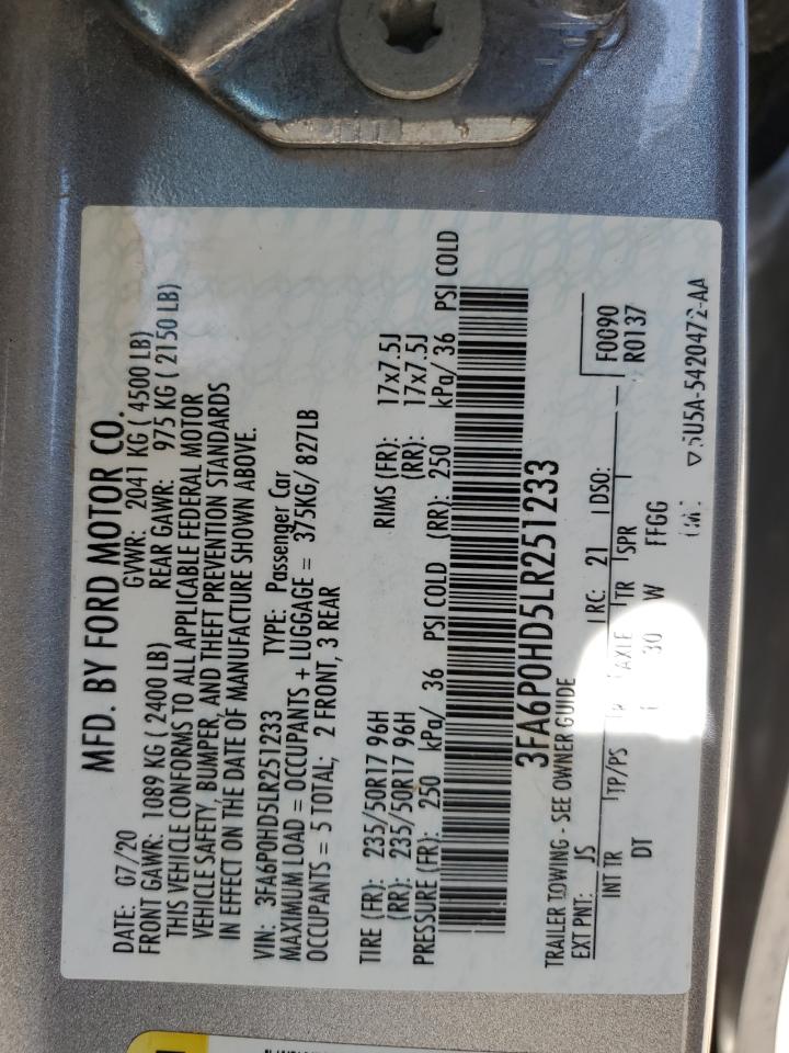 2020 FORD FUSION SE 3FA6P0HD5LR******