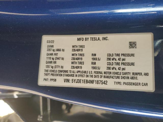 2022 TESLA MODEL 3 5YJ3E1EB4NF******