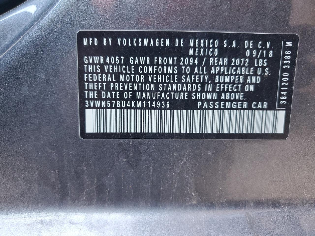 2019 VOLKSWAGEN JETTA S 3VWN57BU4KM******