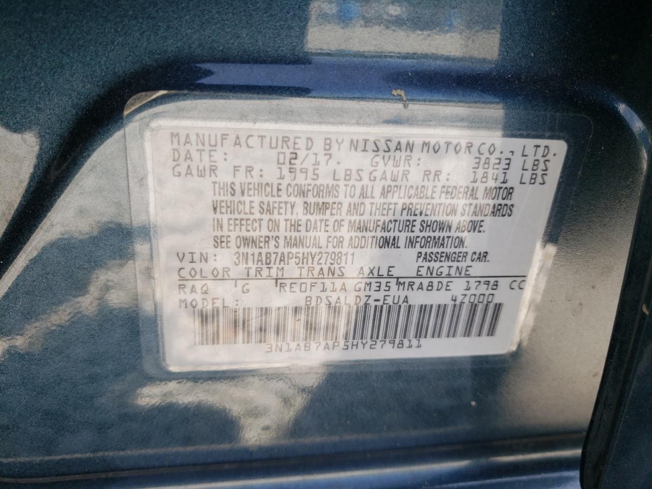 Машина оснащена 4 цилиндровым двигателем объемом 1.8 литров. Коробка передач - автомат. Тип топлива данной модели – бензин. Согласно фотоотчету с аукциона Copart пробег составляет 154 404 км. Номер кузова VIN - 3N1AB7AP5HY******.
