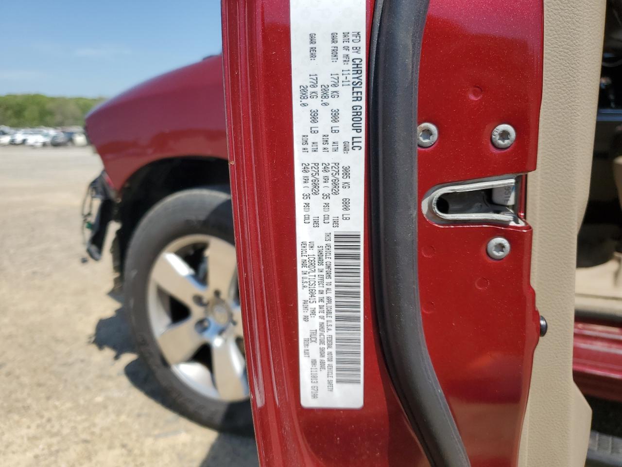 2012 DODGE RAM 1500 SLT 1C6RD7LT1CS******