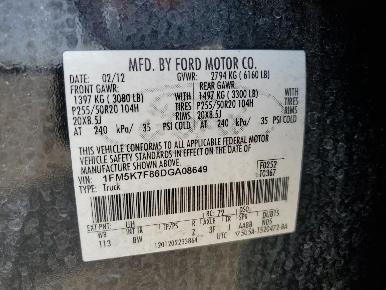 Машина оснащена 6 цилиндровым двигателем объемом 3.5 литров. Коробка передач - автомат. Тип топлива данной модели – бензин. Согласно фотоотчету с аукциона Copart пробег составляет 217 091 км. Номер кузова VIN - 1FM5K7F86DG******.