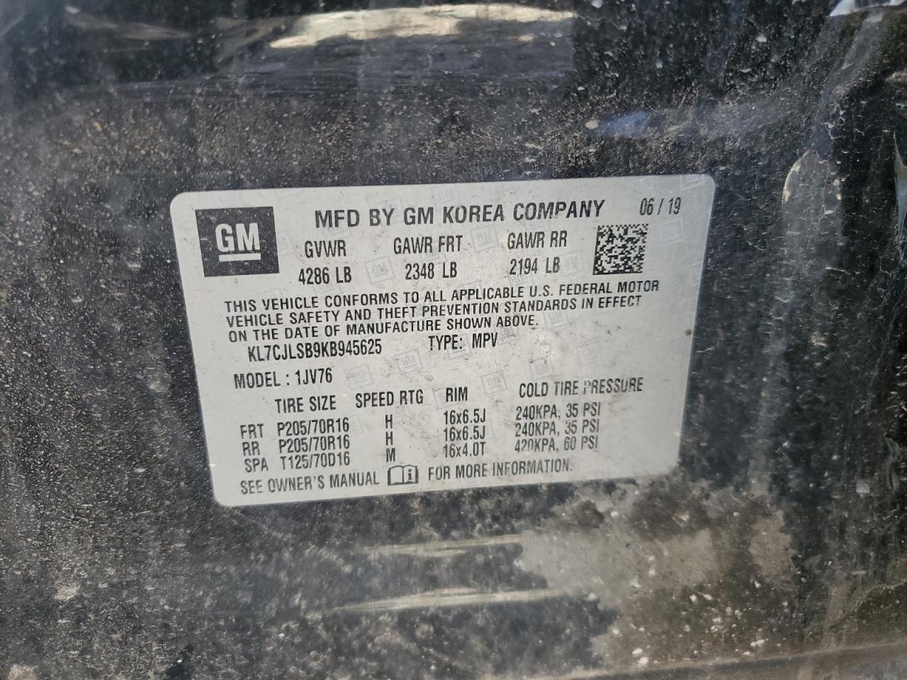 2019 CHEVROLET TRAX 1LT KL7CJLSB9KB******