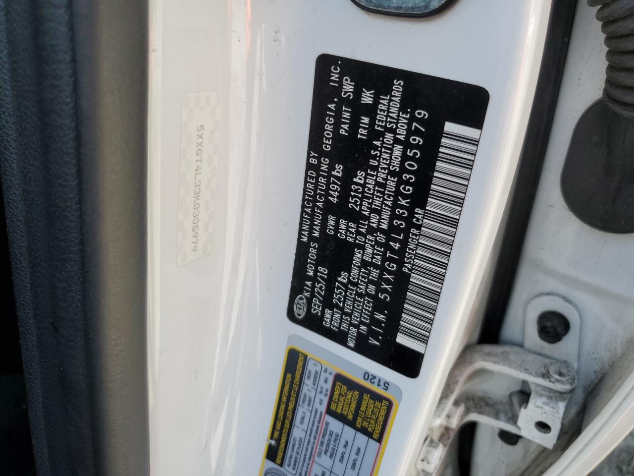 Машина оснащена 4 цилиндровым двигателем объемом 2.4 литров. Коробка передач - автомат. Тип топлива данной модели – бензин. Согласно фотоотчету с аукциона Copart пробег составляет 124 586 км. Номер кузова VIN - 5XXGT4L33KG******.
