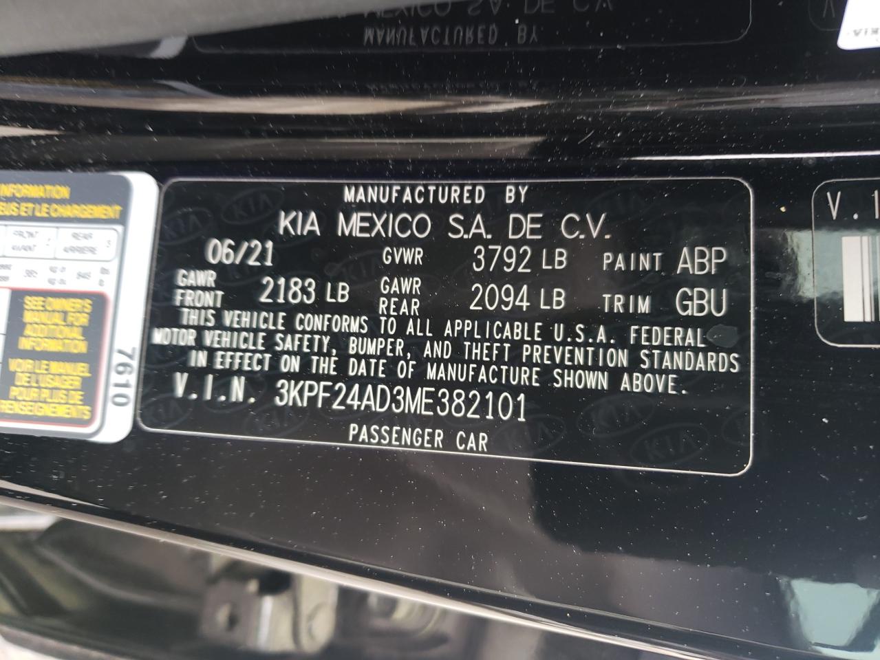 2021 KIA FORTE FE 3KPF24AD3ME******