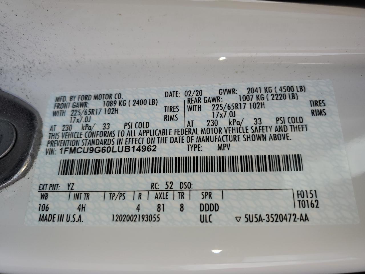 1FMCU9G60LU****** -