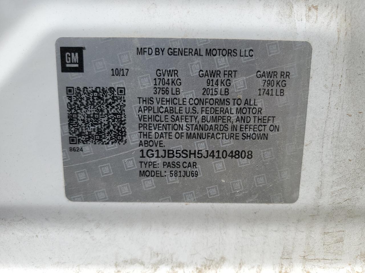 Машина оснащена 4 цилиндровым двигателем объемом 1.8 литров. Тип топлива данной модели – бензин. Согласно фотоотчету с аукциона Copart пробег составляет 86 496 км. Номер кузова VIN - 1G1JB5SH5J4******.