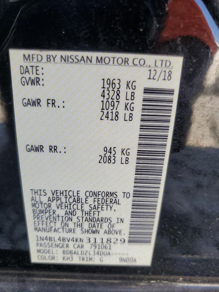 2019 NISSAN ALTIMA S 1N4BL4BV4KN******