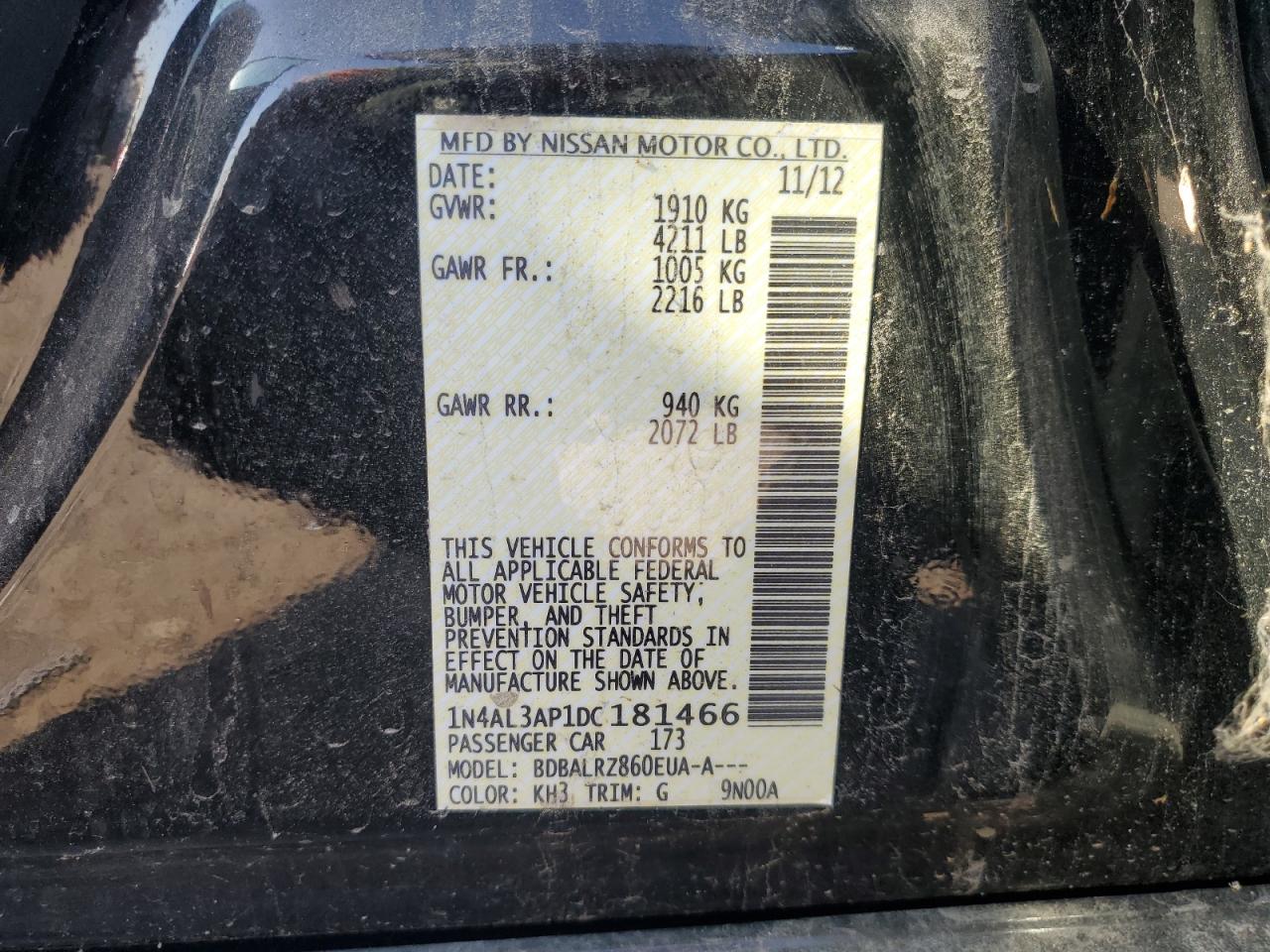 2013 NISSAN ALTIMA 2.5 1N4AL3AP1DC******