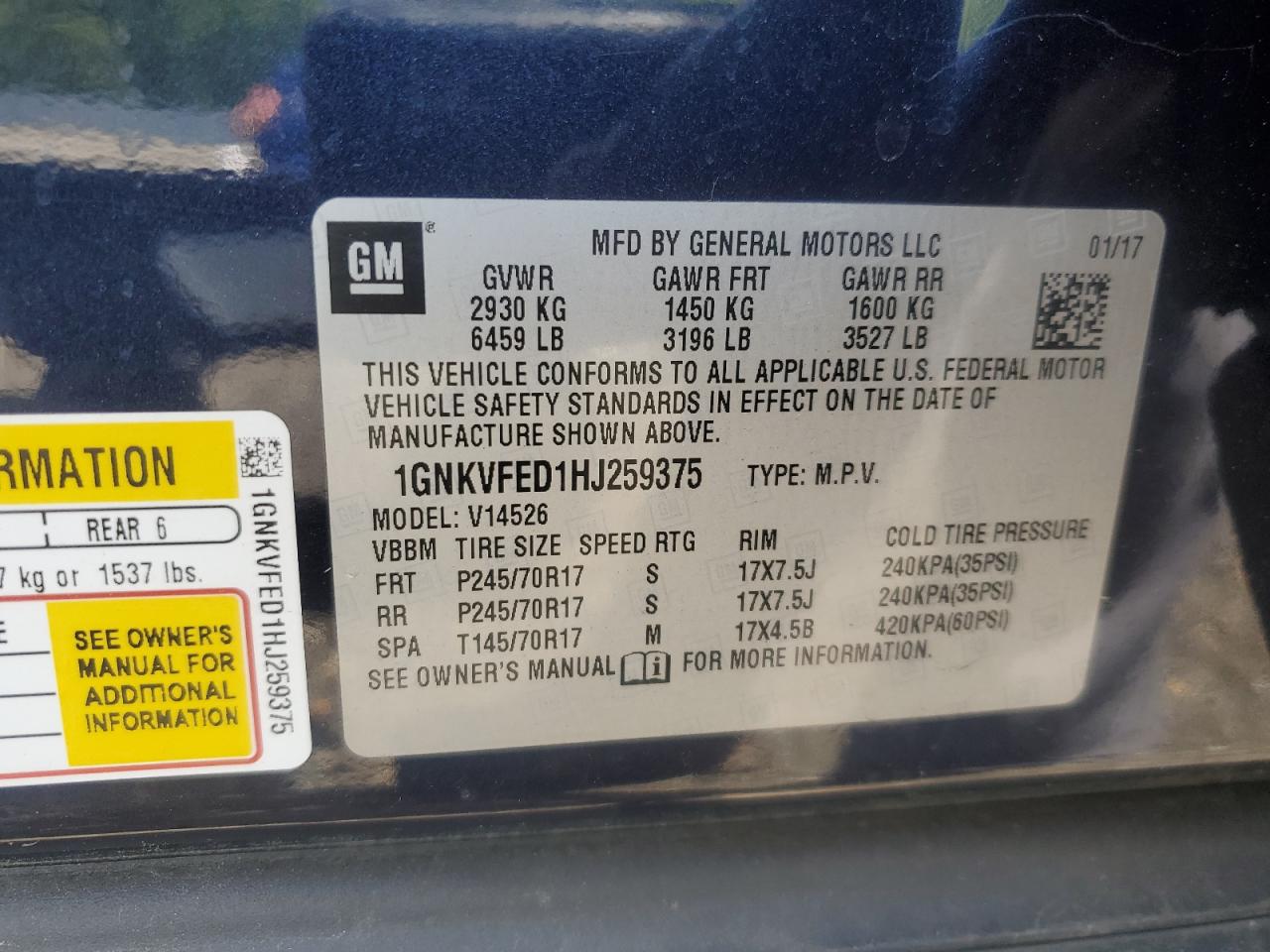 1GNKVFED1HJ****** -