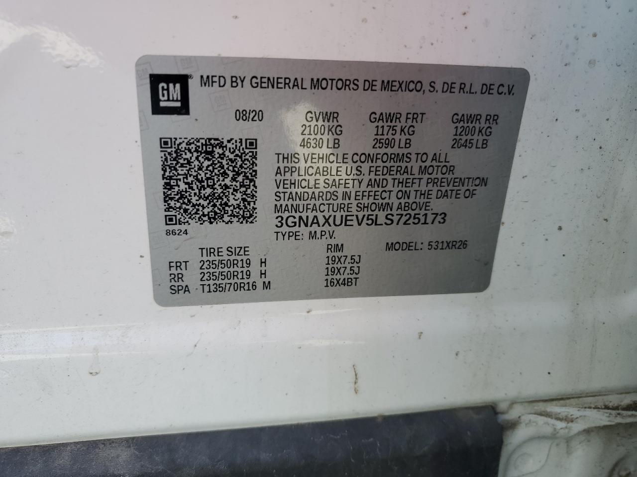 💰 Доаварийная стоимость CHEVROLET EQUINOX 2020 года на рынке США составляет $20 386.