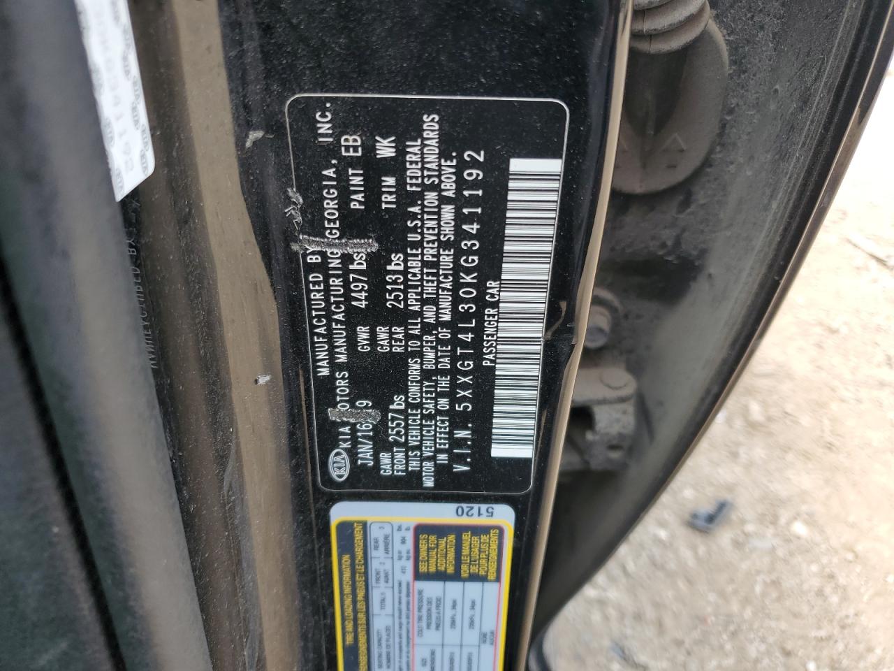 Машина оснащена 4 цилиндровым двигателем объемом 2.4 литров. Коробка передач - автомат. Тип топлива данной модели – бензин. Согласно фотоотчету с аукциона Copart пробег составляет 132 744 км. Номер кузова VIN - 5XXGT4L30KG******.
