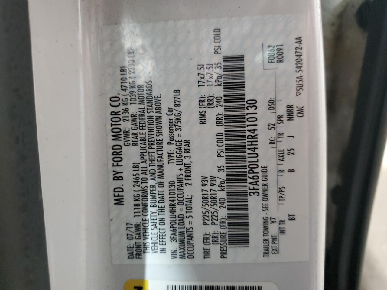 2017 FORD FUSION SE HYBRID 3FA6P0LU4HR******