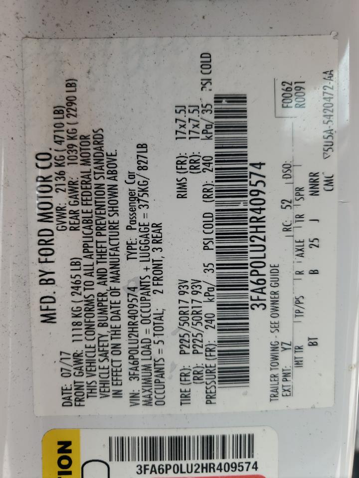 2017 FORD FUSION SE HYBRID 3FA6P0LU2HR******
