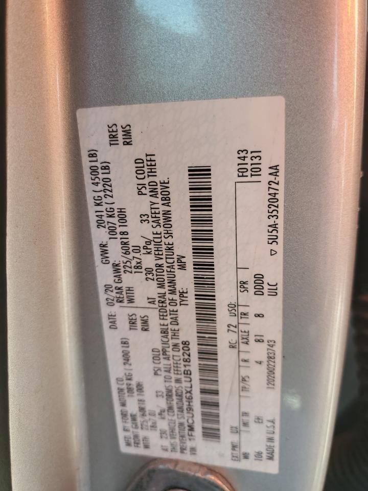 2020 FORD ESCAPE SEL 1FMCU9H6XLU******
