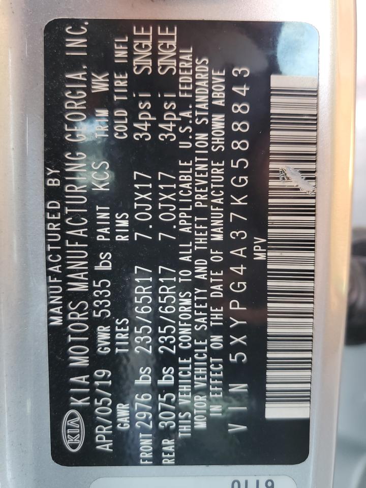 2019 KIA SORENTO L 5XYPG4A37KG******