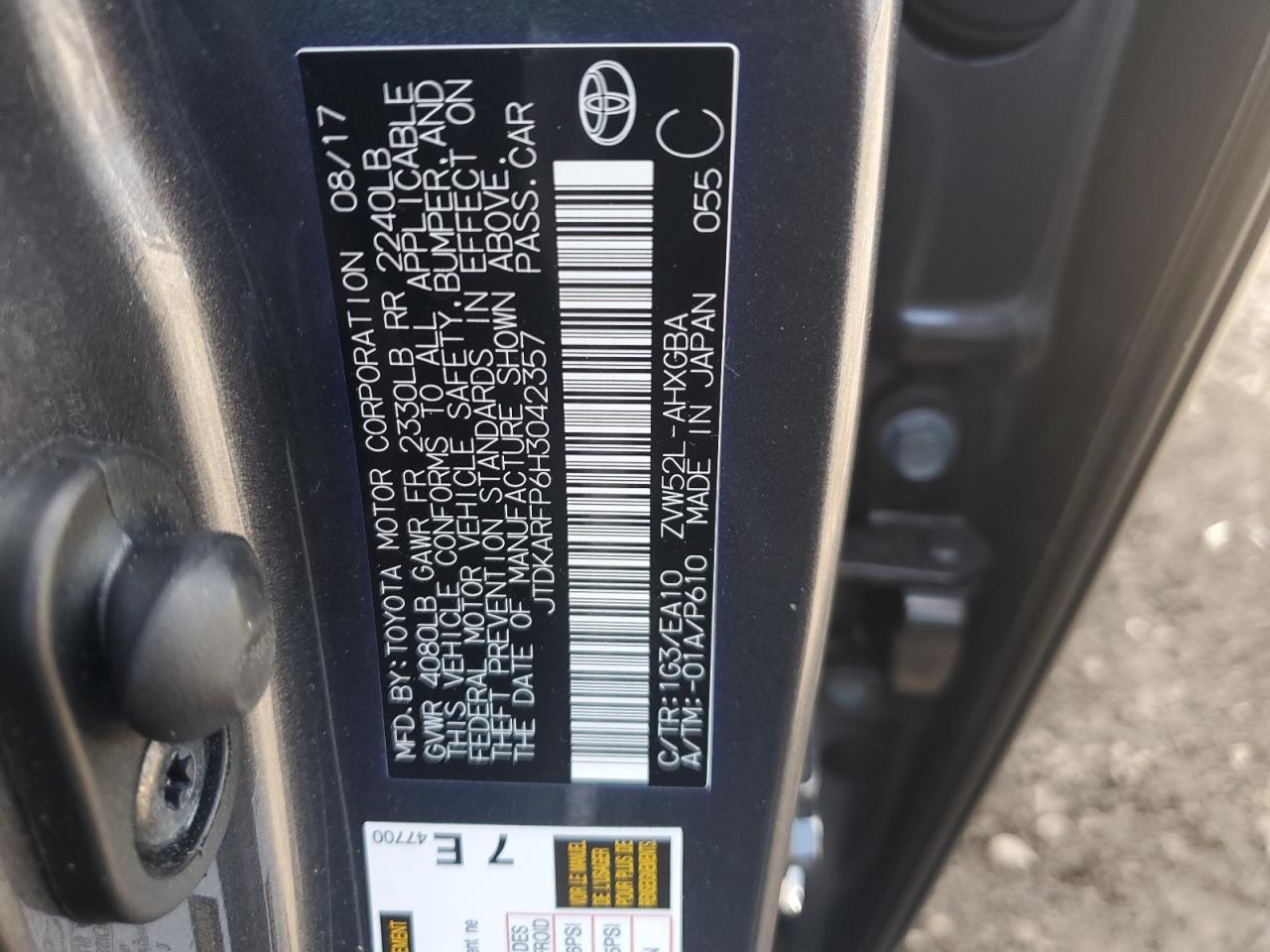 2017 TOYOTA PRIUS PRIME JTDKARFP6H3******