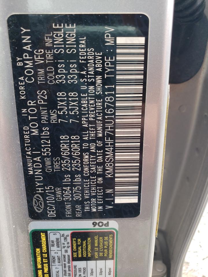 2017 HYUNDAI SANTA FE SE KM8SM4HF7HU******