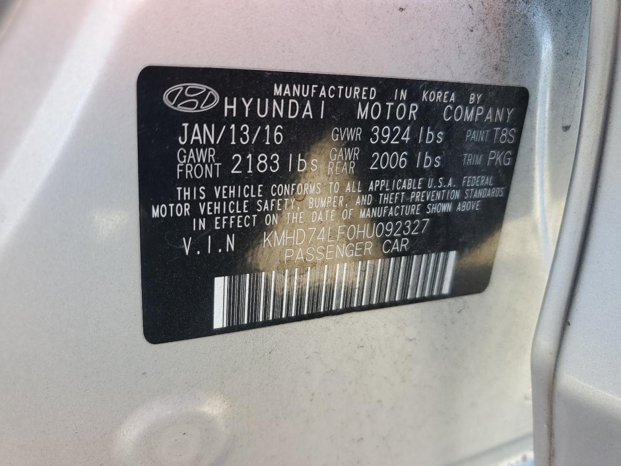 Машина оснащена 4 цилиндровым двигателем объемом 2.0 литров. Коробка передач - автомат. Тип топлива данной модели – бензин. Согласно фотоотчету с аукциона Copart пробег составляет 154 566 км. Номер кузова VIN - KMHD74LF0HU******.