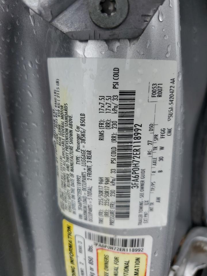 2014 FORD FUSION SE 3FA6P0H72ER******
