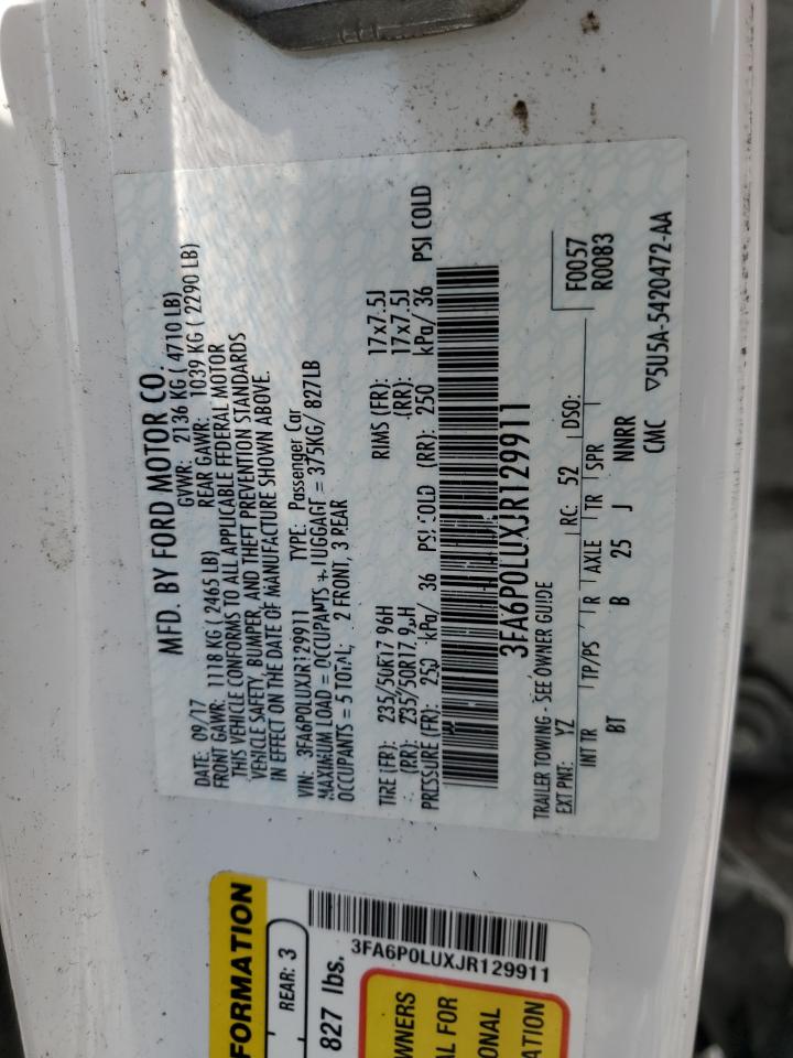 2018 FORD FUSION SE HYBRID 3FA6P0LUXJR******