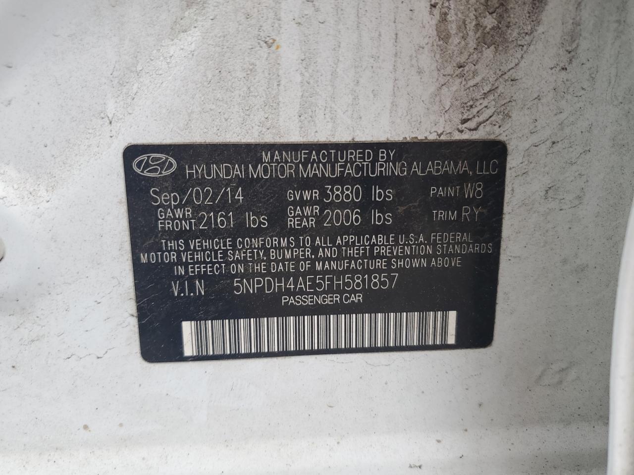 2015 HYUNDAI ELANTRA SE 5NPDH4AE5FH******