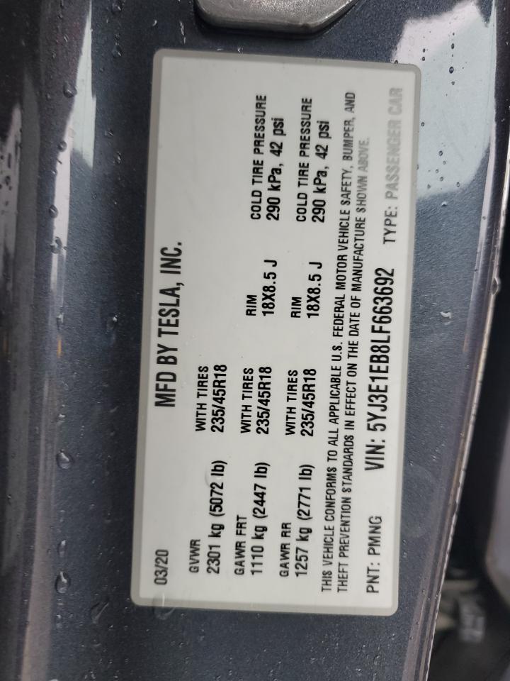 2020 TESLA MODEL 3 5YJ3E1EB8LF******
