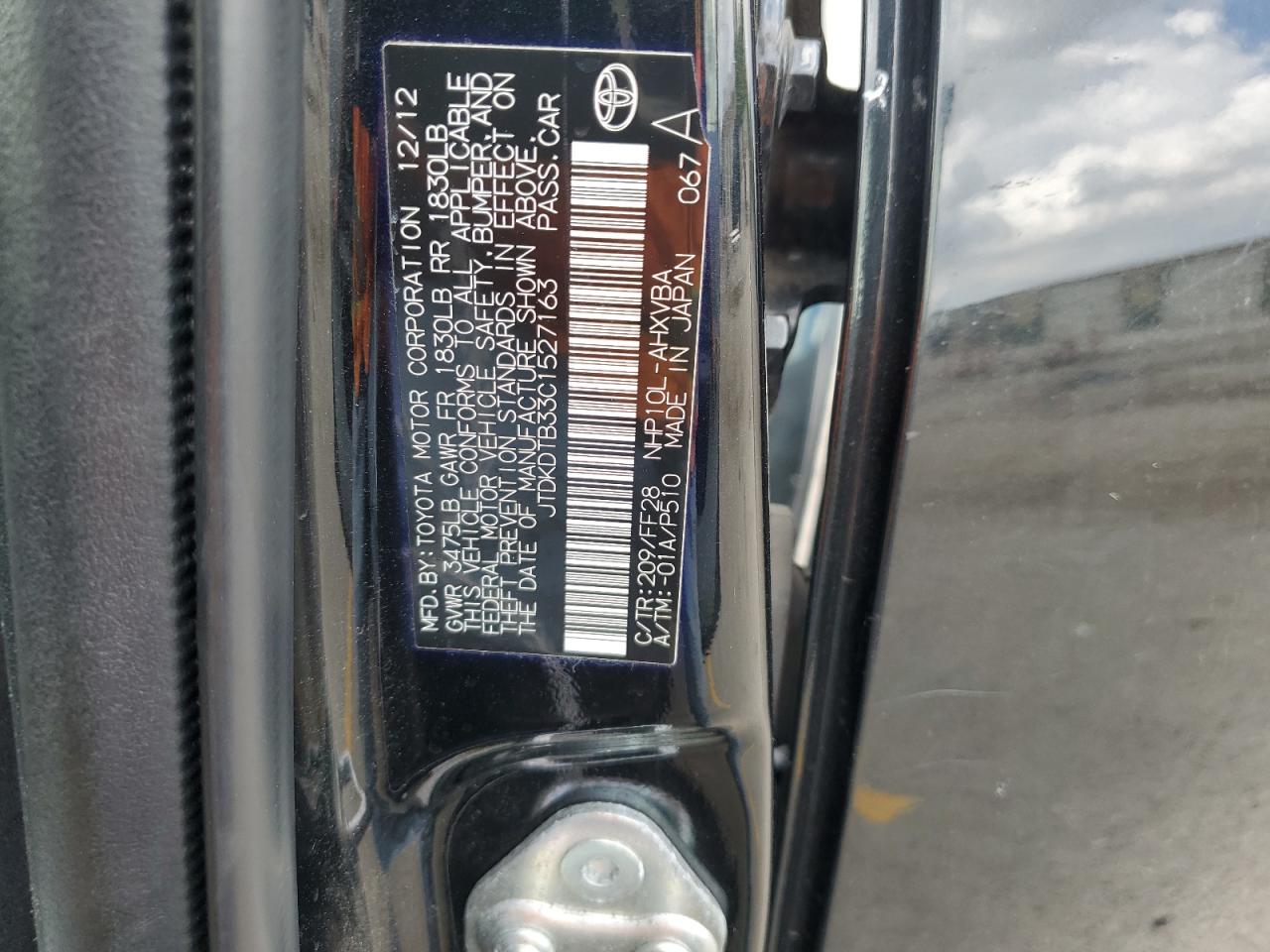 2012 TOYOTA PRIUS C JTDKDTB33C1******