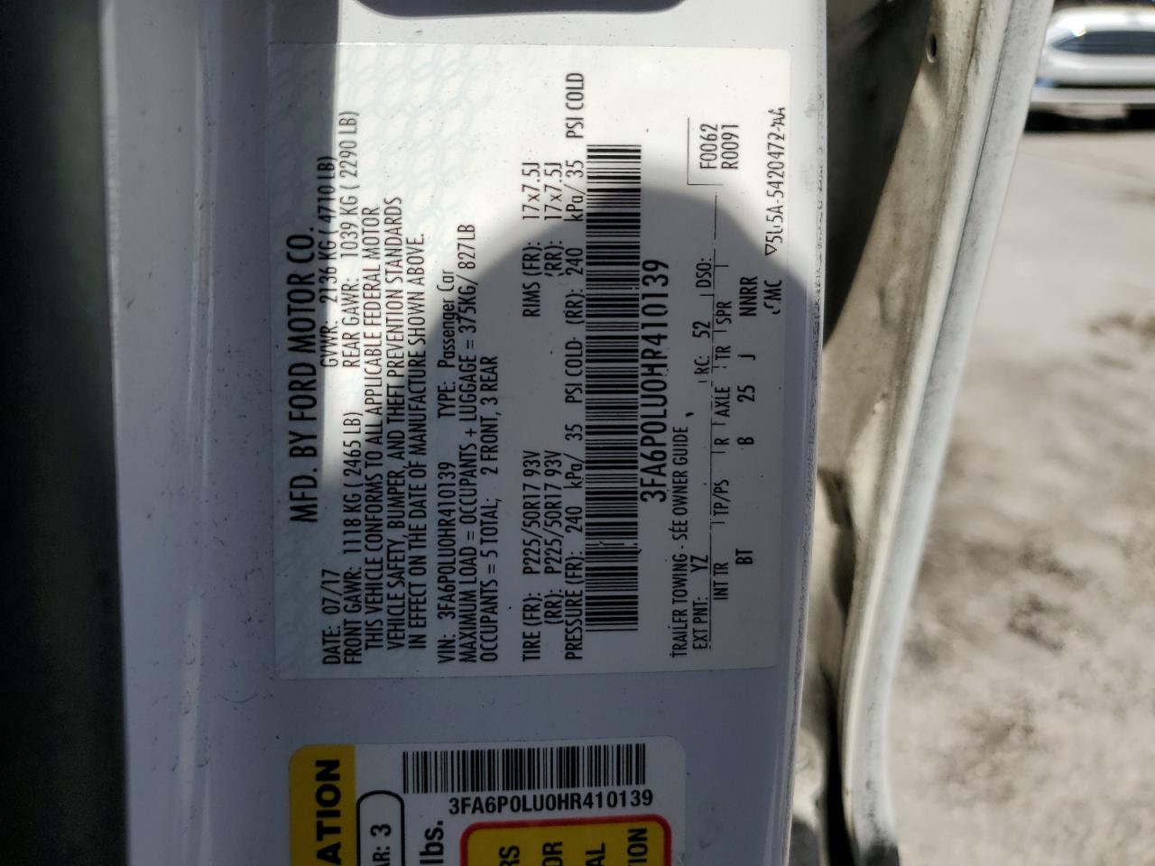 2017 FORD FUSION SE HYBRID 3FA6P0LU0HR******