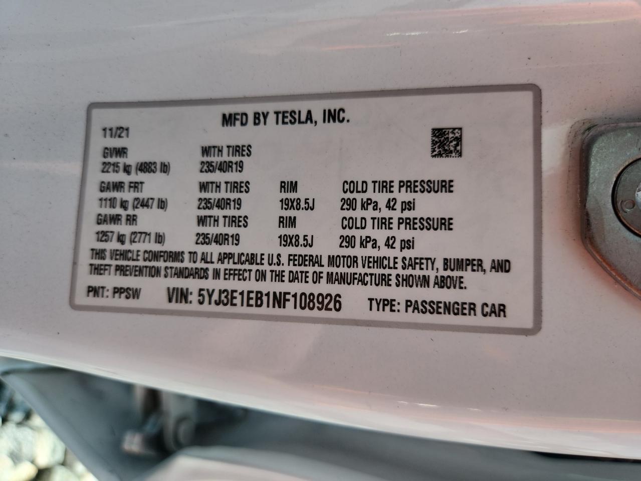 2022 TESLA MODEL 3 5YJ3E1EB1NF******