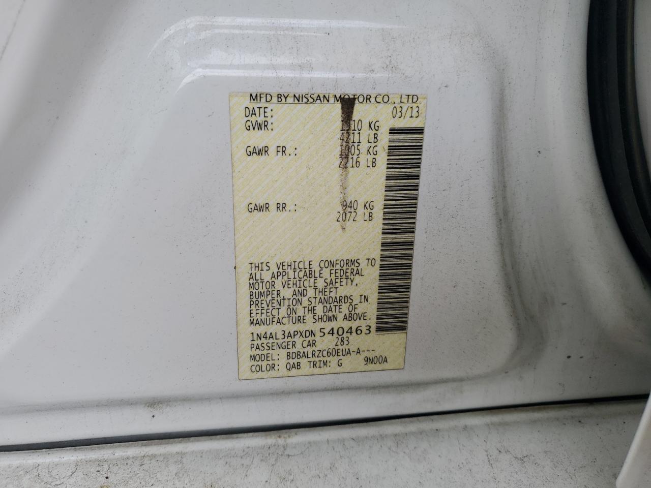 2013 NISSAN ALTIMA 2.5 1N4AL3APXDN******