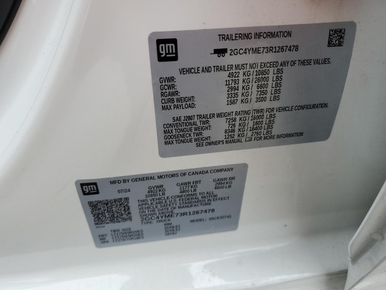Машина оснащена 8 цилиндровым двигателем объемом 6.6 литров. Коробка передач - автомат. Тип топлива данной модели – бензин. Согласно фотоотчету с аукциона Copart пробег составляет 43 090 км. Номер кузова VIN - 2GC4YME73R1******.