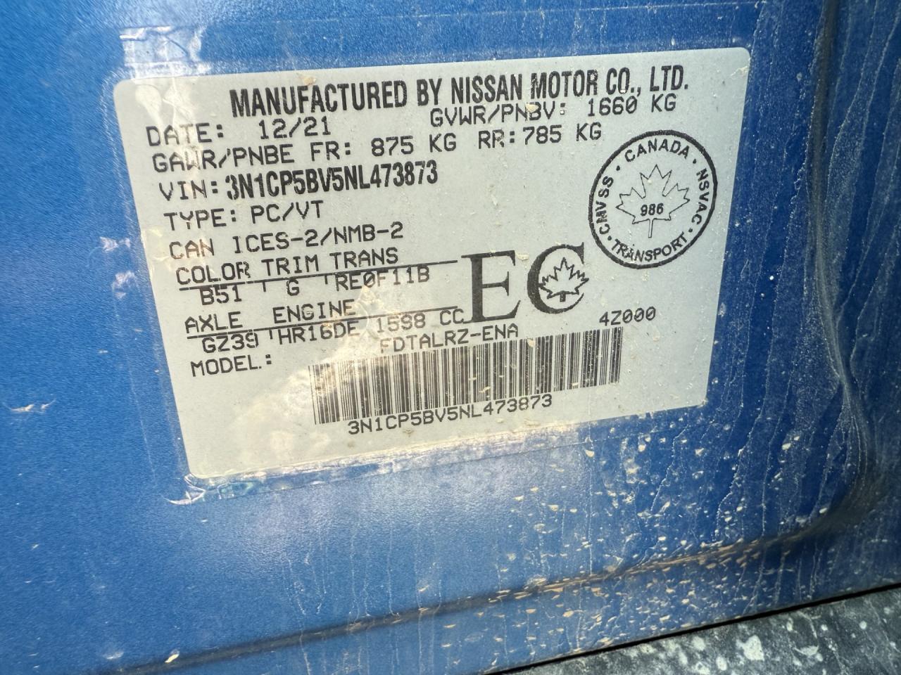 Машина оснащена 4 цилиндровым двигателем объемом 1.6 литров. Тип топлива данной модели – бензин. Согласно фотоотчету с аукциона Copart пробег составляет 66 163 км. Номер кузова VIN - 3N1CP5BV5NL******.